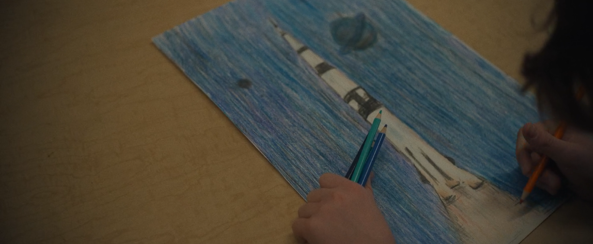 Indissociável de tudo isso está a negação de Gray em oferecer algum desabrochar artístico ostensivo da parte de seu alter ego, de recriar suas aquarelas de criança com os olhos de hoje. Por mais “expressivas” que possam ser as cores do precoce desenhista, ele ainda se ocupa da mimese, que inevitavelmente antecede qualquer pretensão à “originalidade”. Suas motivações não poderiam ser mais coerentes e óbvias: o jovem Paul Graff quer ser um artista para ser famoso, aclamado, amado e admirado por todos. As breves sequências em que vemos os devaneios do garoto parecem perversamente concebidas para provocar o máximo de constrangimento, sem rastro de concessões a uma romantização da “liberdade criativa” ou “pureza” na infância. A necessidade de assinar os próprios trabalhos oferece uma rima macabra com as xícaras revendidas de judeus enviados para campos de concentração e com a omissão da responsabilidade no roubo do computador. Continuamente, Paul desobedece as “tarefas”: diante do mandamento de “ser original” escrito no quadro-negro, copia um quadro de Kandinsky, e mais tarde, quando é pedido um autorretrato, desenha um módulo lunar em pleno voo – imagem intermediária entre o último momento com o avô e a ideia fatídica que terá imediatamente depois de roubar o computador e fugir para Flórida com Johnny. E talvez esteja justamente aqui o primeiro sinal de independência artística, a faísca criativa que o permitirá superar a mimese mais adiante. Desobedecer a tarefa imposta para poder obedecer a tarefa interior e nessa desobediência, retomar com maior força o caminho proposto de início. Nesse caminho, no entanto, ele não encontrará nenhum tipo de reconciliação consigo mesmo ou com o mundo. Apenas a imagem que lhe cabe.