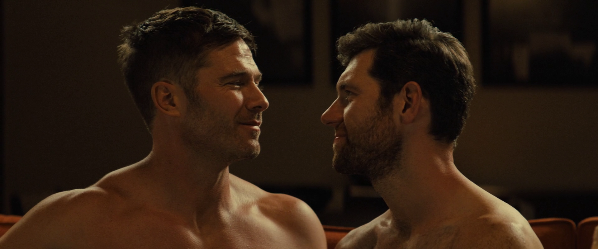 Felizmente, o filme consegue criar momentos de interesse em suas cenas de sexo (ou talvez seja culpa da ultraevidente beleza de Luke Macfarlane, o Aaron): a conexão entre os dois personagens só acontece pelo sexo – conexão que o filme endossa visualmente, mas moralmente rejeita e condena no texto. A primeira transa do casal começa num plano próximo dos dois se beijando e falando sobre o primeiro encontro; abre para um plano geral em que vemos um segundo casal a chupá-los ao mesmo tempo. A segunda transa começa no parque: os dois conversam deitados na grama, acabam engalfinhando-se até que começam a beijar-se e levam a luta corporal até a cama, culminando num gozo do descobrir dos gostos e fetiches de cada um.