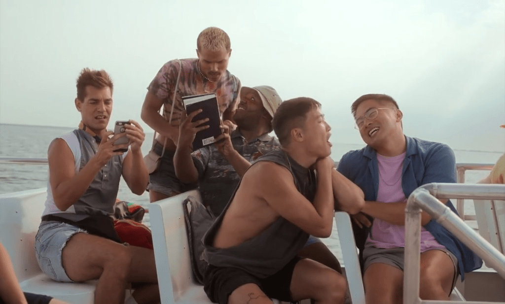 Howie encontra Charlie, por quem se apaixona e com quem vive momentos de graça na ilha. Noah conhece Will, amigo de Charlie, sujeito rico e um tanto pedante e intransigente, mas com o qual divide os ideais de relações não-monogâmicas. E aí se revela um pouco mais da generosidade do filme em relação a seus personagens: entre festas com remixes de Charli XCX, caminhadas pela ilha e desencontros no dark room, é concedido a Howie o direito de viver seu sonho de comédia romântica: seu primeiro beijo com o rapaz acontece ao som dos violinos de Vivaldi; no fim, seu big rom-com moment: os amigos ajudam Charlie a roubar um barco para impedir que Howie vá embora sem saber de seu amor – o grande movimento tão típico dos filmes (corridas no aeroporto ou na estrada, declarações no topo de prédios ou em carruagens etc).