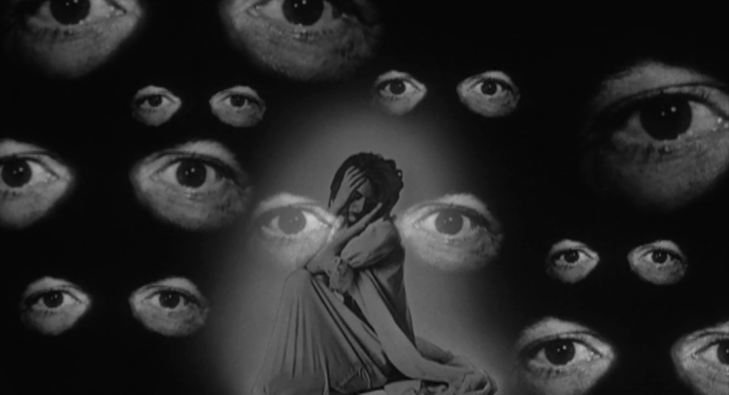 Que os homens matem e que sobre esses crimes sejam feitos alguns filmes, até aí não há nada de excessivamente anormal para os corações cinéfilos. “Ora, falamos apenas de enredos!” Que o cinema tenha parte nesse ato, aí já é outra coisa. Ver é desejar ou, ainda, deflorar. Eis então o pecado mortal de Rebecca pelo qual ela é relegada ao extracampo. Em diferentes graus, as heroínas do female gothic são punidas justamente por sustentar um olhar voyeurista que a forma do filme esposa apenas parcialmente. Nessa disputa pelo direito à perspectiva, a mansão-cinema convoca alguns elementos formais em oposição à protagonista, intitulados por Doane de “agentes de perseguição”: na forma de travellings, fusões, sons e variações de luz, questiona-se e rebate-se o ponto de vista da personagem principal. O que ela vê e escuta é real e diegético ou apenas uma alucinação? Pois se ela pode olhar, a mansão e suas paredes também têm olhos. Daí esse olhar lúbrico, sem sujeito mas ainda assim prestes a gozar, que salta de armários e de espelhos na montagem de The Spiral Staircase (Robert Siodmak, 1946) ou que cerca sua vítima num sonho vertiginoso em The Night Walker (William Castle, 1964). A mensagem é clara: ela também é observada.