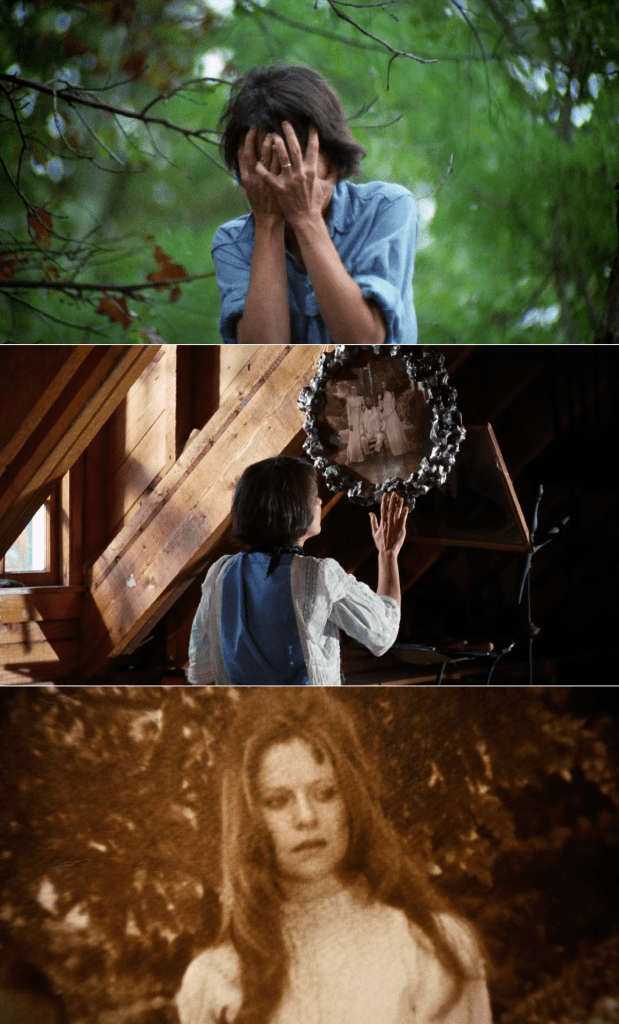 Os problemas dessas duas protagonistas não se resumem mais aos personagens homens como acontecia com os maridos abusadores e golpistas nas representações cinematográficas entre as décadas de 1940 e 1950. Aqui, estão em jogo as regras e os desejos patriarcais que tomam forma, por exemplo, na disputa de propriedade, colocando as próprias mulheres como rivais. Como se o preço a ser pago pela independência e certa ideia de liberdade tivesse que ser alto o suficiente para que as protagonistas sempre tivessem que seguir solitárias (e loucas), seja em barcos à deriva ou dirigindo por uma rota de fuga. A figura da louca da casa funciona como espelhamento das protagonistas e suas antagonistas, como teorizam Gilbert e Gubar. Essa outra, seja a vampira sedutora ou a figura da tia que busca reparação, mesclada com a da mãe nos diários – dizendo que algo de “diabólico” acontece na casa – ajuda a desenvolver a ideia de que tipo de herança cabe às mulheres. Não apenas no campo do parentesco sanguíneo, mas agora de herança feminina, algo que seria próprio na história daquelas que se reconhecem como mulheres e que é reproduzido por séculos como um padrão facilmente identificado.
