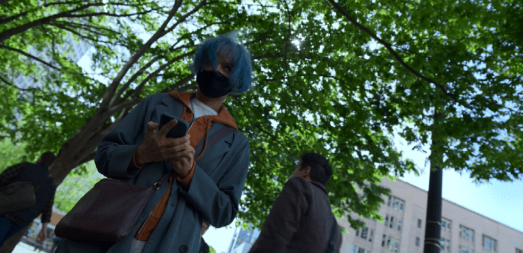 Apesar desse enfoque no “indivíduo em relação de forças com o capitalismo” – ou talvez por causa desse enfoque –, o filme integra de maneira fascinante o contexto epidemiológico em que nasceu: para além do drama da personagem, cuja agorafobia foi agravada pelo coronavírus, estamos diante de um filme que, em termos de produção, reduz sua locação principal a um apartamento e, quando nas cenas externas, assimila a necessidade da filmagem ligeira à ansiedade desesperada da protagonista. É um filme “menor” que, engenhosamente, tira o melhor proveito de suas condições restritivas de produção. É também o que realiza Kimi, afinal, quando converte o dispositivo de inteligência artificial em instrumento de fuga ou a pistola de pregos em arma.