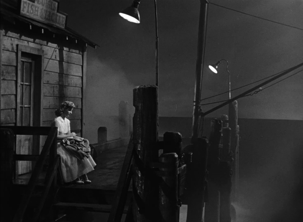 Depois do “treinamento”, ela inaugura sua nova identidade, incorporando o jargão e o inventário dos gestos “charmosos” com desconforto. Como modelo da loja, ela poderá ostentar no corpo o tão desejado casaco de mink para que seja apalpado e examinado por possíveis clientes. Imediatamente ela atrai o olho de Franzi (Curt Bois), representante pessoal (leia-se lacaio profissional) de um milionário que está dando uma festa num iate. Com o convite, fica subentendida a consumação de sua objetificação voluntária. Ela hesita, chora, é recriminada por Maxime, mas acaba indo. O plano em que ela espera carona no cais, remete a um tableau de inocência acossada digno de fábula: Bel Geddes é iluminada de cima por uma luz solitária, cercada por sombras densas e brumas. O iate, em contraplano, parece uma nave infernal.