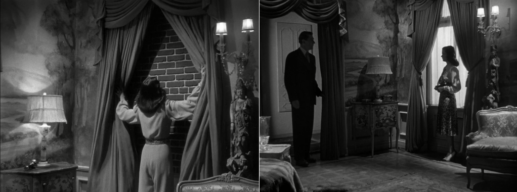 Os quartos são aqui, afinal, paralelamente à estrutura do casamento, fonte de maravilhamento e horror, e por isso o momento de revelá-los interrompe, em certo sentido, o fluxo narrativo, assumindo a função de mostrar ou descrever, frente à de narrar. Como um monstro em um filme de horror ou como o primeiro primeiro plano de uma estrela hollywoodiana, tal revelação é construída com suspense e apreciada com deleite. Por isso há tantas cortinas e portas antes de Celia finalmente chegar no quarto cuja porta está trancada, adiando o momento em que irá finalmente adentrar no coração do mistério da casa e de Mark.