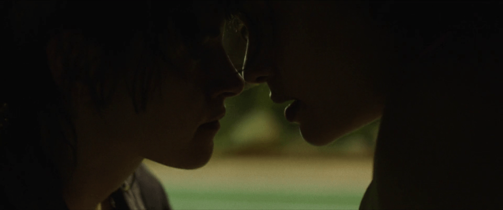 Outro ponto divergente entre os dois filmes é justamente a questão do amor. Jackie e Lou possuem uma relação amorosa muito mais autêntica e menos conservadora que Jamie e Marian. O fato de boa parte do filme girar em torno de uma competição de fisiculturismo e se passar em uma academia pode parecer conflitante com o que escrevo, visto que o amor enquanto ação não pode se preocupar em enquadrar a relação, e menos ainda a/o parceira/o, em categorias preestabelecidas e validadas socialmente – sendo os ideais de beleza um bom e cruel exemplo dessas categorias. Dito de forma mais simples, tentar contribuir para o desenvolvimento pessoal e espiritual da pessoa amada implica, em alguma medida, aceitar essa pessoa como ela é, valorizá-la e auxiliar, sempre que possível, o desenvolvimento de suas potencialidades. Jackie não impõe a Lou seu modo de vida e tampouco Lou problematiza ou recusa as incursões da primeira em busca do corpo “perfeito”. Fica nítido para o espectador o quanto Jackie se sente feliz e realizada com a atividade que desempenha, cujos resultados são fonte de orgulho e jamais de angústia ou pressão estética. Lou, por sua vez, magra, pálida e nada atlética, inspira na namorada desejo e admiração, jamais recriminação ou rejeição.